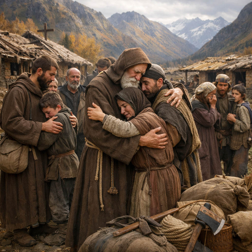 — Сынки! Не обидитесь? Я вам тут поесть принесла: солений, картошечки, хлеба. Всё своё, домашнее. Возьмите на здоровье!